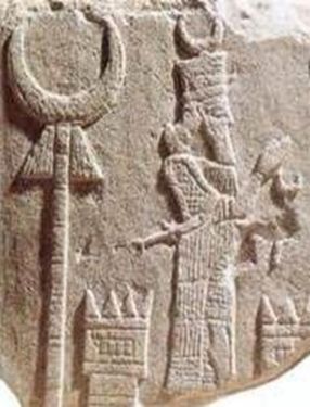 the presentation is presided by the moon god nanna-Sîn manifested by the moon crescent.