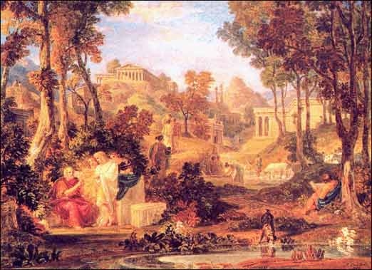 "For many generations, as long as the divine nature lasted in them, they were obedient to the laws, and well-affectioned towards the god, whose seed they were ; for they possessed true and in every way great spirits, uniting gentleness with wisdom in the various chances of life, and in their intercourse with one another. They despised everything but virtue, caring little for their present state of life, and thinking lightly of the possession of gold and other property, which seemed only a burden to them ; neither were they intoxicated by luxury ; nor did wealth deprive them of their self-control ; but they were sober, and saw clearly that all these goods are increased by virtue and friendship with one another, whereas by too great regard and respect for them, they are lost and friendship with them. By such reflections and by the continuance in them of a divine nature, the qualities which we have described grew and increased among them ; but when the divine portion began to fade away, and became diluted too often and too much with the mortal admixture, and the human nature got the upper hand, they then, being unable to bear their fortune, behaved unseemly, and to him who had an eye to see grew visibly debased, for they were losing the fairest of their precious gifts ; but to those who had no eye to see the true happiness, they appeared glorious and blessed at the very time when they were full of avarice and unrighteous power. Zeus, the god of gods, who rules according to law, and is able to see into such things, perceiving that an honourable race was in a woeful plight, wanted to inflict punishment on them, that they might be chastened and improve..."