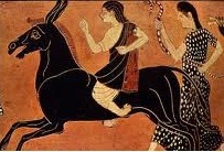 As for the blacksmith god Hephaestus, he had built two golden robots, representing two beautiful girls on whom he relied to walk in his palace. These servants in gold were to be absolutely vital for his disabled body (cf. Iliad 18, 417, compared with 18, 411 and 20, 37). These luxury crutches were substituted for "the spindly legs" of the god to support his body and allow him to move.